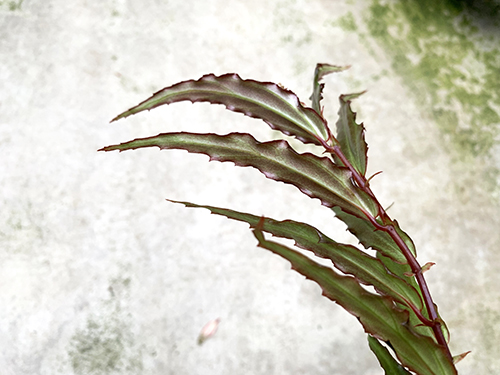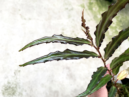 ボルネオ原産の木立性シュラブタイプ。ボルネオ産の中では普通の湿度でも栽培できる品種だと思います。葉身も比較的硬いです。まだ花を見ていません。