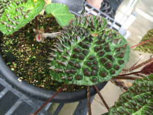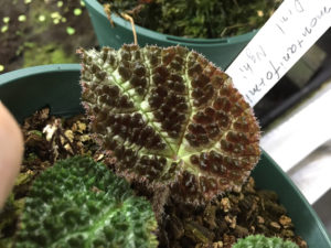 最近入手したこのベゴニア(B. montaniformis)も近い種類で、葉の表面の凹凸が大きい品種です。もう少し大きくなれば特徴がはっきりしてくると思います。性質的にはすぐそばでライアが育っていたので参考になると思います。やっと出回り始めたのでフェロックスも早く育ててみたいですね。
